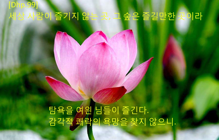 “여래의 아들이여, 세상 사람들은 감각적인 쾌락을 추구하지만 빅쿠는 그래서는 안 되느니라. 세상 사람들이 쾌락을 찾지 못하는 숲 속에서 빅쿠들은 즐거움을 찾아야만 하느니라.”