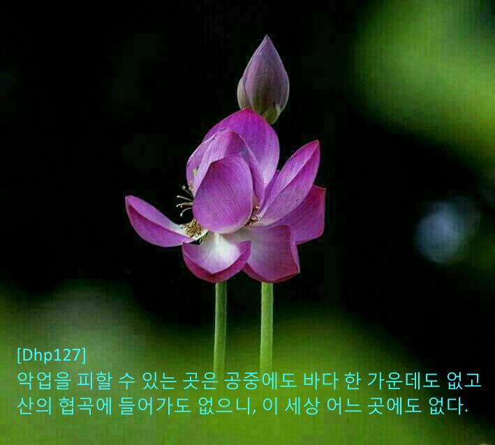 "수행승이여, 실로 그러하니라. 실로 너의 말이 옳으니라. 비록 하늘에 있거나 바다에 있거나 혹은 동굴 속에 있거나 간에 악행의 결과가 미치지 않는 곳은 이 세상 어디에도 없느니라."