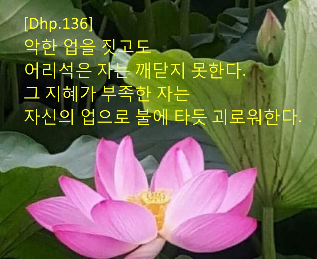 “수행승들이여, 어리석은 자가 악행을 저지를 때 그는 그것이 자기를 해치는 일인 줄 알지 못하느니라. 그렇지만 그가 저지른 악행의 결과는 어김이 없나니, 그는 결코 그것을 피할 수 없느니라.”라고 말씀하셨다.