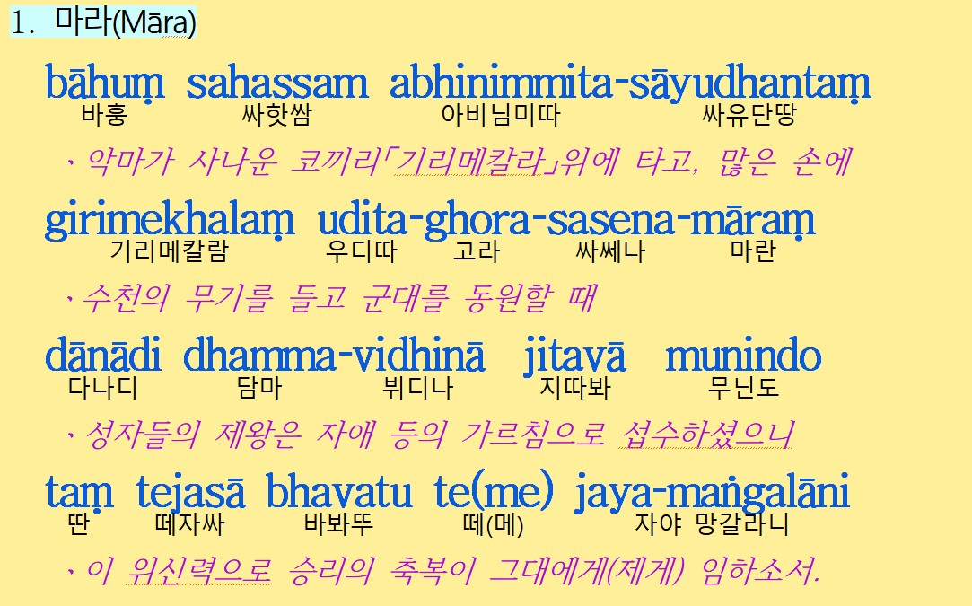 자야망갈라 가타(Jayamaṅgala Gāthā) 자야망갈라 가타(Jayamaṅgala Gāthā)승리와 행운의 노래ㆍ길상승리게(吉祥勝利偈) 빠릿따(paritta)ㆍ수호경(守護經) 2025.02.15